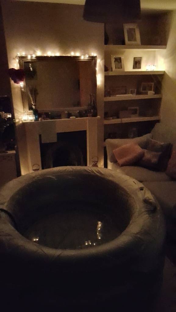 In the lead-up to the birth, Mum and I had read a book on hypnobirthing, passages of which I read to Alex, and attended the free hypnobirthing session at our local hospital which was run by the community midwife team. I didn’t do the daily hypnobirthing training; I ended up just doing bits that I thought would be helpful. I did practice my breathing often, and visualisations of a happy calm place (which was a real memory of our honeymoon – a clifftop walk with amazing views). I also prepared a playlist of calming music. I’d written my positive affirmations out in pink and blue ink which I stuck on the mantel piece, in front of the birth pool, and put lots of happy photographs around that I could see when in the pool. I had a nice candle to light, and fairy lights to turn on. This was all very important to me, and I think really helped me get into the positive strong mind-set that got me through. At 2 points during the labour, when we were waiting for the contractions to come quicker, Alex and Mum read the affirmations out loud, so I could keep positive – they were really special moments.